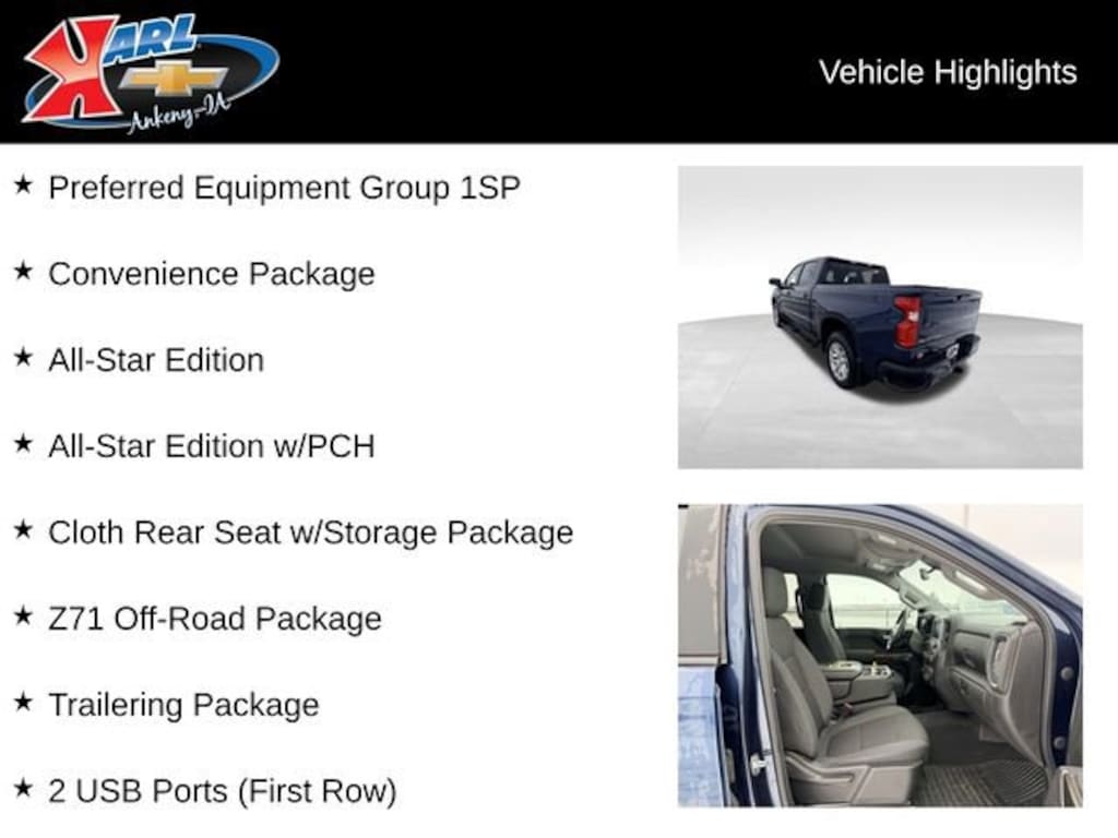 Certification Program Details: Karl Chevrolet of Ankeny, The Nation's #1 CarBravo certified dealer, where platinum quality vehicles and unmatched benefits come together! This vehicle qualifies for our CarBravo Certified program reserved for the highest-quality pre-owned vehicles that are 10 model years or newer and have less than 100,000 miles. Every CarBravo Certified vehicle includes: ? Comprehensive 126-Point Inspection Professionally inspected by factory-trained technicians to meet strict mechanical, safety, and cosmetic standards. ? 6-Month / 6,000-Mile Bumper-to-Bumper Limited Warranty Enjoy added peace of mind with extensive coverage from the day you drive off the lot. ? 24/7 Roadside Assistance & Courtesy Transportation Flat tire? Dead battery? Need a tow? You're covered anywhere, anytime throughout the warranty period. ? Vehicle History & Title Guarantee Clean title, completed safety recalls, and a full CARFAX® or AutoCheck® report provided for complete transparency. ? 10-Day / 500-Mile Exchange Promise If you don't absolutely love it, bring it back and exchange it no hassle, no stress. Experience peace of mind and premium protection exclusively from Karl Chevrolet of Ankeny, the Nation's #1 CarBravo Certified Deale