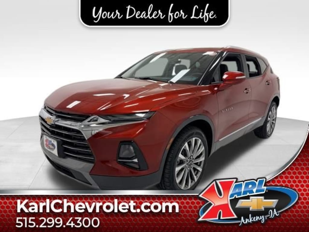 CARFAX One-Owner, Local Trade & Sold New at Karls! Clean CARFAX. Certified. Cherry Red Tintcoat 2022 Chevrolet Blazer Premier 2.0L Turbocharged AWD, Adaptive Cruise Control, Apple CarPlay/Android Auto, Auto High-beam Headlights, Bose Premium 8-Speaker Audio System Feature, Collapsible Cargo Area Organizer (LPO), Driver Confidence II Package, Enhanced Automatic Emergency Braking, Enhanced Convenience Package, Exterior Parking Camera Rear, Front Console Organizer, Front dual zone A/C, HD Surround Vision, Interior Protection Package (LPO), LED Headlamps, Memory Settings For Driver Seat & Exterior Mirrors, Navigation System, Power driver seat, Power Liftgate, Power Tilt & Telescoping Steering Column, Preferred Equipment Group 0HD, Premium All-Weather Cargo Mat (LPO), Premium All-Weather Floor Mats, Rear Camera Mirror, Rear Camera Mirror Washer, Safety Alert Seat, SiriusXM w/360L, Storage Optimization Package (LPO), Ventilated Driver & Front Passenger Seats, Wheels: 20 Medium Android Machined-Face Aluminum, Wireless Charging. 22/27 City/Highway MPG 9-Speed Automatic with Overdrive AWD
