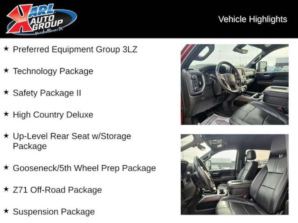Recent Arrival! Odometer is 11608 miles below market average! Certified. Clean CARFAX. Cherry Red Tintcoat 2022 Chevrolet Silverado 2500HD 4D Crew Cab High Country Duramax 6.6L V8 Turbodiesel 10-Speed Automatic 4WD, Jet Black Leather, 12-Volt Rear Auxiliary Power Outlet, 120-Volt Bed Mounted Power Outlet, 120-Volt Instrument Panel Power Outlet, 15 Diagonal Multicolor Head-Up Display, 170 Amp Alternator, 6 Rectangular Chromed Tubular Assist Steps, 8 Driver Information Center, Advanced Trailering System, Auto-Dimming Inside Rear-View Mirror, Automatic Emergency Braking, Bed View Camera w/2 Trailer Camera Provisions, Black Chevytec Spray-On Bedliner w/Chevrolet Logo, Bluetooth® For Phone, Chevrolet Connected Access Capable, Chrome Front Grille, Chrome Mirror Caps, Color-Keyed Carpeting Floor Covering, Compass, Deep-Tinted Glass, Dual Charge-Only USB Ports (2nd Row), Electric Rear-Window Defogger, Electrical Lock Control Steering Column, Electronic Cruise Control w/Set & Resume Speed, Following Distance Indicator, Forward Collision Alert, Front Carpeted Floor Mats, Front Chrome Recovery Hooks, Front LED Fog Lamps, Gooseneck/5th Wheel Prep Package, HD Surround Vision w/2 Trailer View Camera Provisions, Heated & Auto-Dim Pwr Vertical Trailering Mirrors, Heated Steering Wheel, High Country Deluxe, Hill Descent Control, Hitch Guidance w/Hitch View, Integrated Trailer Brake Controller, IntelliBeam Automatic High Beam On/Off, Keyless Open & Start, Lane Change Alert w/Side Blind Zone Alert, Lane Departure Warning System, Leather-Wrapped Steering Wheel, LED Cargo Area Lighting, Manual Tilt & Telescoping Steering Column, Off-Road Suspension, OnStar & Chevrolet Connected Services Capable, Polished Exhaust Tip, Power Door Locks, Power Front Windows w/Driver Express Up/Down, Power Front Windows w/Passenger Express Up/Down, Power Rear Windows w/Express Down, Power Sliding Rear Window w/Defogger, Preferred Equipment Group 3LZ, Rear Camera Mirror, Rear Carpeted Floor Mats, Rear Cross Traffic Alert, Rear Wheelhouse Liners, Remote Vehicle Starter System, Safety Alert Seat, Safety Package II, SiriusXM w/360L, Standard Tailgate, Steering Wheel Audio Controls, Suspension Package, Technology Package, Ultrasonic Front & Rear Park Assist, Unauthorized Entry Theft-Deterrent System, Universal Home Remote, Up-Level Rear Seat w/Storage Package, Wi-Fi Hotspot Capable, Wireless Charging, Wireless Phone Projection, Z71 Off-Road Package.