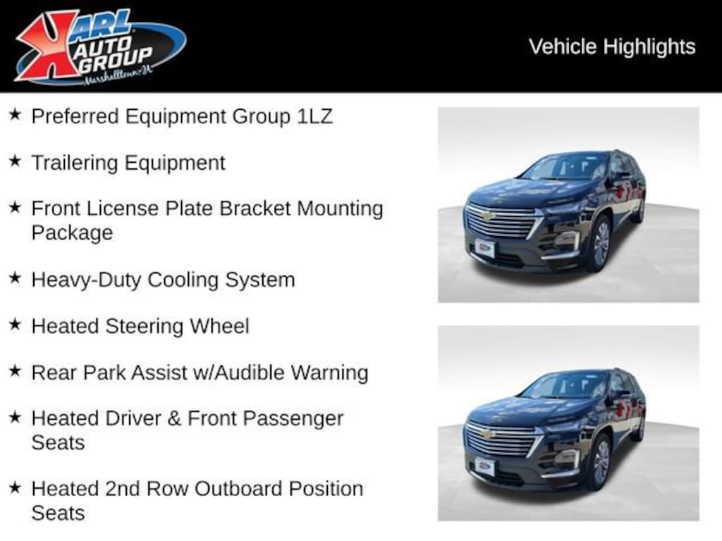 Certification Program Details: Karl of Marshalltown, your newest CarBravo dealer, where platinum quality vehicles and unmatched benefits come together! -Comprehensive Limited Bumper to Bumper Warranty. -24/7 Roadside Assistance: -Multi-Point Vehicle Inspection: Every vehicle undergoes a Platinum Quality Certified Inspection known throughout the industry to ensure top quality. -Vehicle Exchange Program. Within 10-Days and 500 miles -Complimentary Vehicle History Report -Nationwide Dealer Network Support: Enjoy the backing of the extensive CarBravo and GM dealership network. -OnStar and SiriusXM Trials: Enjoy connected services and entertainment with included trial subscriptions. -Terms and conditions may apply. With every vehicle purchased, you'll enjoy the peace of mind that comes with a limited warranty, 24/7 roadside assistance, and a comprehensive vehicle inspection.