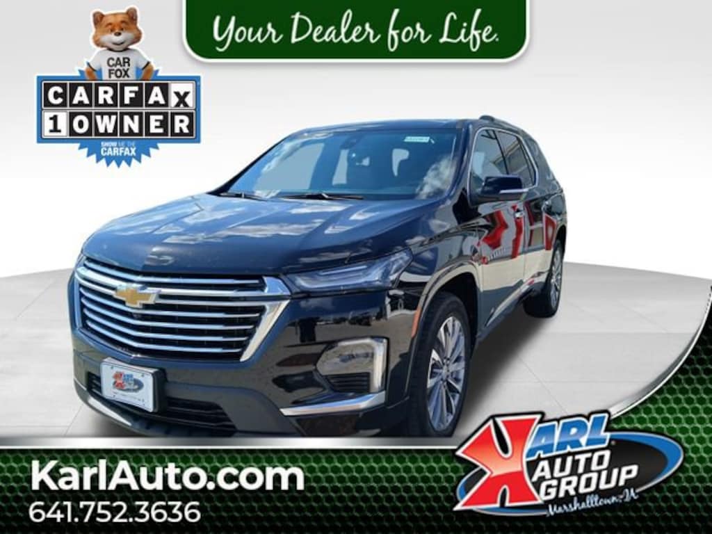 Recent Arrival! Certified. CARFAX One-Owner. Clean CARFAX. Black Metallic 2022 Chevrolet Traverse 4D Sport Utility Premier 3.6L V6 SIDI VVT 17/25 City/Highway MPG 9-Speed Automatic AWD, Front License Plate Bracket Mounting Package, Heated 2nd Row Outboard Position Seats, Heated Driver & Front Passenger Seats, Heated Steering Wheel, Heavy-Duty Cooling System, Hitch Guidance w/Hitch View, Preferred Equipment Group 1LZ, Rear Park Assist w/Audible Warning, Trailering Assist Guidelines, Trailering Equipment, Ventilated Driver & Front Passenger Seats.