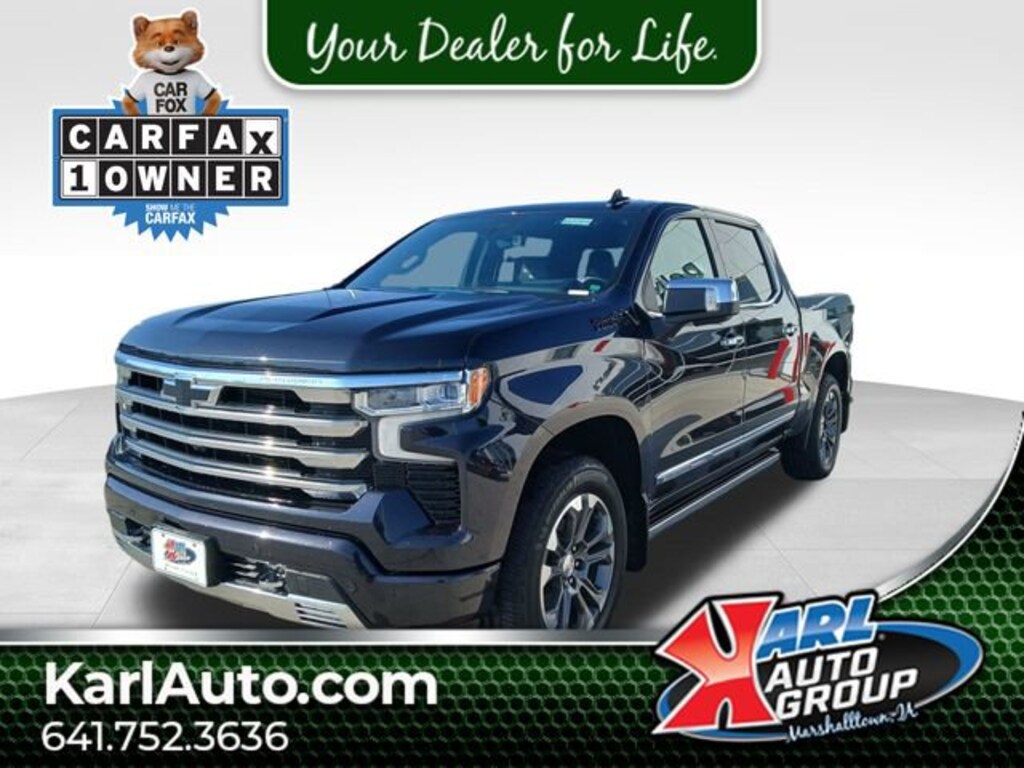 Recent Arrival! Certified. CARFAX One-Owner. Clean CARFAX. Dark Ash Metallic 2023 Chevrolet Silverado 1500 4D Crew Cab High Country EcoTec3 5.3L V8 16/20 City/Highway MPG 10-Speed Automatic 4WD, Jet Black Leather, 10-Way Power Driver Seat w/Lumbar, 10-Way Power Passenger Seat Adjuster w/Lumbar, 12.3 Multicolor Reconfigurable Digital Display, 120-Volt Bed Mounted Power Outlet, 120-Volt Instrument Panel Power Outlet, 15 Diagonal Multicolor Head-Up Display, 2 USB Data Ports, 2nd Row Heated Outboard Seats, Adaptive Cruise Control, Auto-Dimming Inside Rear-View Mirror, Auto-Locking Rear Differential, Bed View Camera, Black Name Plates (LPO), Bluetooth® For Phone, Body-Color Painted Mirror Caps, Chevrolet Connected Access Capable, Chevytec Spray-On Black Bedliner, Chrome Assist Steps, Chrome Recovery Hooks, Color-Keyed Carpeting Floor Covering, Compass, Dark Essentials Package (LPO), Deep-Tinted Glass, Driver Memory, Dual Exhaust w/Polished Outlets, Dual Rear USB Ports (Charge Only), Electric Rear-Window Defogger, Electrical Steering Column Lock, Electronic Cruise Control, Floor Mounted Center Console, Front Carpeted Floor Mats, Front LED Fog Lamps, Front Rainsensing Wipers, HD Surround Vision, Heated Driver & Front Outboard Passenger Seats, Heated Steering Wheel, High Capacity Suspension Package, Hitch Guidance, Hitch Guidance w/Hitch View, Integrated Trailer Brake Controller, Keyless Open & Start, LED Cargo Area Lighting, OnStar & Chevrolet Connected Services Capable, Outside Heated Power-Adjustable Mirrors, Perimeter Lighting, Power Front Passenger Windows w/Express Up/Down, Power Front Windows w/Driver Express Up/Down, Power Rear Windows w/Express Down, Power Sliding Rear Window w/Rear Defogger, Power Tailgate, Power Tilt & Telescoping Steering Column, Preferred Equipment Group 3LZ, Rear Camera Mirror, Rear Carpeted Floor Mats, Rear Cross Traffic Alert-Braking, Rear Pedestrian Alert, Rear Wheelhouse Liners, Remote Vehicle Starter System, Safety Alert Seat, SiriusXM w/360L, Standard Tailgate, Steering Wheel Audio Controls, Technology Package, Theft Deterrent System (Unauthorized Entry), Trailer Camera Provisions, Trailer Side Blind Zone Alert, Trailering App, Trailering Package, Ultrasonic Front & Rear Park Assist, Universal Home Remote, Up-Level Rear Seat w/Storage Package, Ventilated Driver & Front Passenger Seats, Wi-Fi Hot Spot Capable, Wireless Charging, Wireless Phone Projection, Wrapped Steering Wheel.