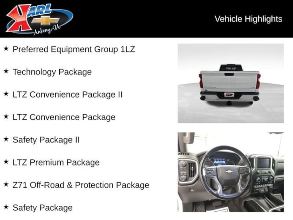 Certification Program Details: Karl Chevrolet of Ankeny, The Nation's #1 CarBravo Certified Dealer! Every CarBravo Certified vehicle includes: Comprehensive 126-Point Inspection Professionally inspected by factory-trained technicians to meet strict mechanical, safety, and cosmetic standards. 12-Month / 12,000-Mile Bumper-to-Bumper Limited Warranty Enjoy added peace of mind with extensive coverage from the day you drive off the lot. 24/7 Roadside Assistance & Courtesy Transportation Flat tire? Dead battery? Need a tow? You're covered anywhere, anytime throughout the warranty period. Vehicle History & Title Guarantee Clean title, completed safety recalls, and a full CARFAX® or AutoCheck® report provided for complete transparency. 10-Day / 500-Mile Exchange Promise If you don't absolutely love it, bring it back and exchange it — no hassle, no stress. Experience peace of mind and premium protection — exclusively from Karl Chevrolet of Ankeny, the Nation's #1 CarBravo Dealer!