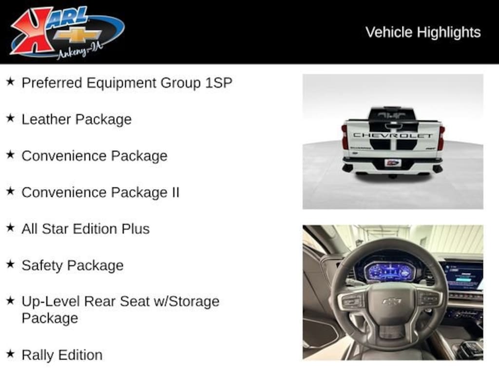 This 2025 Chevrolet Silverado 1500 RST 4WD CREW CAB 147 RST is a true workhorse with uncompromising capability and style. Featuring the powerful EcoTec3 6.2L V8 engine, this Silverado delivers impressive performance and efficiency, with 420 horsepower and 460 lb-ft of torque. The Rally Edition adds a striking visual presence with black rally stripes, badging, and assist steps, while the All Star Edition Plus and Safety Package provide a wealth of premium features and advanced driver assistance technologies.