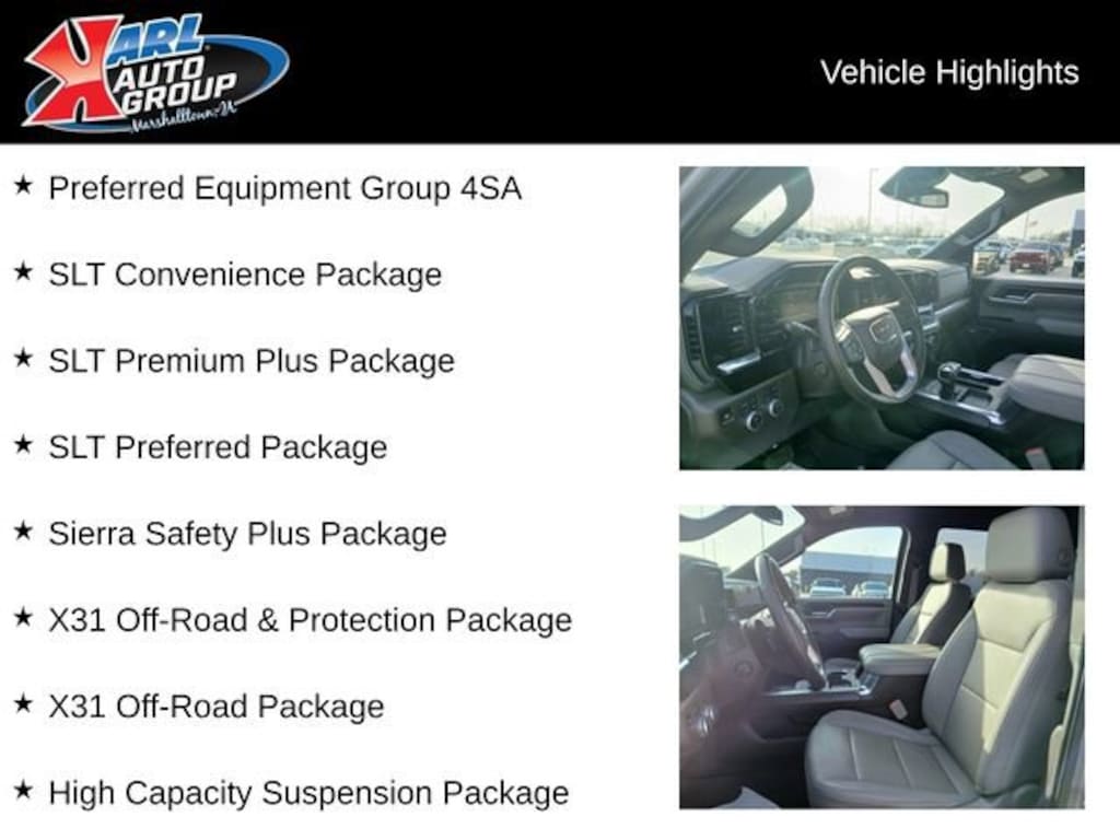 Recent Arrival! Odometer is 13768 miles below market average! Certified. CARFAX One-Owner. Clean CARFAX. Sterling Metallic 2024 GMC Sierra 1500 4D Crew Cab SLT EcoTec3 5.3L V8 10-Speed Automatic 4WD, Dark Walnut/Slate Leather, 120-Volt Bed Mounted Power Outlet, 120-Volt Interior Power Outlet, 170 Amp Alternator, 2 Charge/Data USB Ports, 2 Charge/Data USB Ports Inside Center Console, 2 Type-C Charge-Only Rear USB Ports, 6-Speaker Audio System Feature, Adaptive Cruise Control, All-Weather Floor Liner (LPO), Auto-Locking Rear Differential, Auxiliary External Transmission Oil Cooler, Chrome Header & Chrome Grille Insert Bars, Chrome Wheel To Wheel Assist Steps, Color-Keyed Carpeting Floor Covering, Deep-Tinted Glass, Dual Exhaust System, Electric Rear-Window Defogger, Electronic Precision Shift, Floor-Mounted Center Console, Front Bucket Seats, Front Frame-Mounted Black Recovery Hooks, Front Rain-Sensing Wipers, GMC Connected Access Capable, HD Rear Vision Camera, HD Surround Vision, Heated 2nd Row Outboard Seats, Heavy-Duty Air Filter, High Capacity Suspension Package, Hill Descent Control, Hitch Guidance, Hitch View, In-Vehicle Trailering System App, Integrated Trailer Brake Controller, Keyless Open & Start, LED Cargo Area Lighting, Manual Tilt-Wheel & Telescoping Steering Column, Off-Road Suspension, OnStar & GMC Connected Services Capable, Perimeter Lighting, Power Door Locks, Power Front Passenger Windows w/Express Up/Down, Power Front Windows w/Driver Express Up/Down, Power Rake & Telescoping Steering Column, Power Rear Windows w/Express Down, Power Sliding Rear Window w/Rear Defogger, Preferred Equipment Group 4SA, Premium Bose 7-Speaker Sound System, ProGrade Trailering System, Push Button Start, Rear Cross Traffic Braking, Rear Pedestrian Detection, Rear Wheelhouse Liners, Remote Vehicle Starter System, Safety Alert Seat, Sierra Safety Plus Package, SiriusXM w/360L, SLT Convenience Package, SLT Preferred Package, SLT Premium Plus Package, Spray-On Pickup Bedliner w/GMC Logo, Standard Suspension Package, Steering Wheel Audio Controls, Theft Deterrent System (Unauthorized Entry), Trailer Camera Provisions, Trailer Side Blind Zone Alert, Trailering Package, Ultrasonic Front & Rear Park Assist, Universal Home Remote, Ventilated Driver & Front Passenger Seats, Wheels: 20 Polished Aluminum w/RFX, Wi-Fi Hotspot Capable, Wireless Charging, X31 Hard Badge, X31 Off-Road & Protection Package, X31 Off-Road Package.