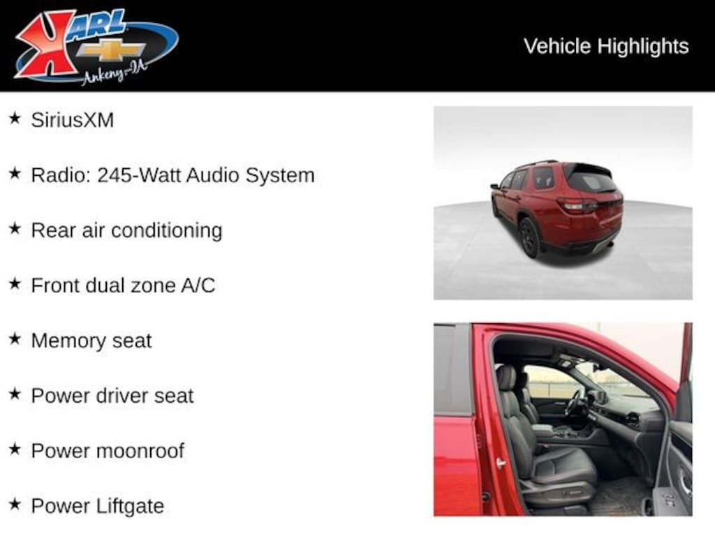 Certification Program Details: Karl Chevrolet of Ankeny, The Nation's #1 CarBravo Certified Dealer! Every CarBravo Certified vehicle includes: Comprehensive 126-Point Inspection Professionally inspected by factory-trained technicians to meet strict mechanical, safety, and cosmetic standards. 12-Month / 12,000-Mile Bumper-to-Bumper Limited Warranty Enjoy added peace of mind with extensive coverage from the day you drive off the lot. 24/7 Roadside Assistance & Courtesy Transportation Flat tire? Dead battery? Need a tow? You're covered anywhere, anytime throughout the warranty period. Vehicle History & Title Guarantee Clean title, completed safety recalls, and a full CARFAX® or AutoCheck® report provided for complete transparency. 10-Day / 500-Mile Exchange Promise If you don't absolutely love it, bring it back and exchange it no hassle, no stress. Experience peace of mind and premium protection exclusively from Karl Chevrolet of Ankeny, the Nation's #1 CarBravo Dealer!
