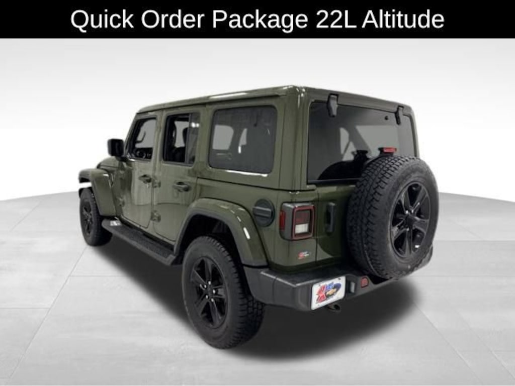 Recent Arrival! Clean CARFAX. Local Trade! Equipped With Running Boards! Certified. Sarge Green Clearcoat 2021 Jeep Wrangler Unlimited Sahara Altitude UNLIMITED SAHARA 4X4 2.0L I4 DOHC Altitude Package, Apple CarPlay/Android Auto, Black Interior Accents, Black Trail Rated Badge, Body Color 3-Piece Hard Top, Body Color Grille w/Gloss Black Rings, Cold Weather Group, Front dual zone A/C, GPS Antenna Input, Heated Front Seats, Heated Steering Wheel, Integrated Voice Command w/Bluetooth, Leather Trimmed Bucket Seats, Leather Wrapped Park Brake Handle, Leather Wrapped Shift Knob, Matte Black Jeep Badge, Mold In Color Bumper w/Gloss Black, MOPAR All-Weather Floor Mats (DISC), MOPAR Hardtop Headliner, ParkView Rear Back-Up Camera, Quick Order Package 22L Altitude, Radio: Uconnect 4 w/7 Display, Remote Proximity Keyless Entry, Remote Start System, Wheels: 18 x 7.5 Gloss Black Aluminum, Wizard Black Instrument Panel Bezels. 21/24 City/Highway MPG 8-Speed Automatic 4WD