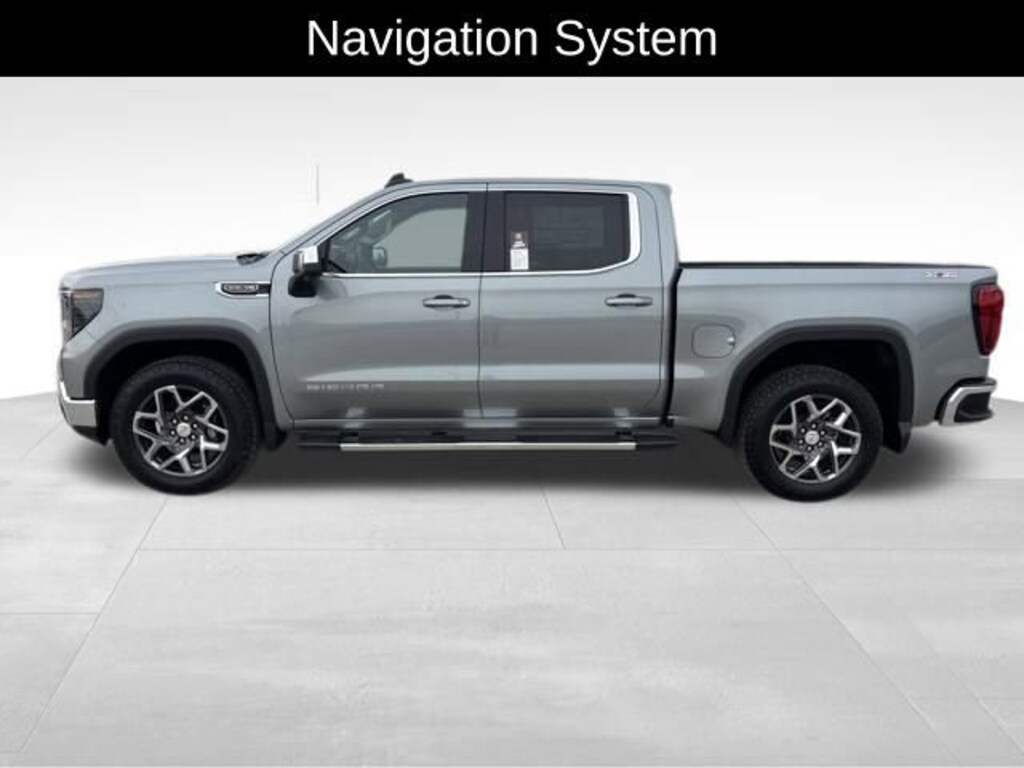 10-Speed Automatic, 4WD, Black Cloth, 120-Volt Bed Mounted Power Outlet, 120-Volt Interior Power Outlet, 2 Charge/Data USB Ports, 2 Type-C Charge-Only Rear USB Ports, 4-Way Manual Passenger Seat Adjuster, 6-Speaker Audio System Feature, Adaptive Cruise Control, AM/FM radio: SiriusXM with 360L, Auto-Locking Rear Differential, Automatic temperature control, Brake assist, Cloth Seat Trim, Color-Keyed Carpeting Floor Covering, Compass, Deep-Tinted Glass, Dual Exhaust System, Dual front impact airbags, Dual front side impact airbags, Dual-Zone Automatic Climate Control, Electric Rear-Window Defogger, Electronic Stability Control, External Engine Oil Cooling, Following Distance Indicator, Forward Collision Alert, Front Center Armrest w/Storage, Front Frame-Mounted Black Recovery Hooks, Front Pedestrian Braking, Front reading lights, Front Rubberized-Vinyl Floor Mats, Front wheel independent suspension, HD Rear Vision Camera, HD Surround Vision, Heated front seats, Heavy-Duty Air Filter, High Capacity Suspension Package, Hill Descent Control, Hitch Guidance, Hitch View, Integrated Trailer Brake Controller, LED Cargo Area Lighting, Navigation System, Occupant sensing airbag, Off-Road Suspension, OnStar Services Capable, Overhead console, Passenger door bin, Perimeter Lighting, Power Door Locks, Preferred Equipment Group 3SA, Preferred Package, Push Button Start, Radio: Premium GMC Infotainment Audio System, Rear Cross Traffic Braking, Rear Pedestrian Detection, Rear Rubberized-Vinyl Floor Mats, Rear step bumper, Rear Wheelhouse Liners, Rear window defroster, Remote Start Package, Remote Vehicle Starter System, Sierra Safety Plus Package, SLE Convenience Package, SLE Value Package, Standard Suspension Package, Steering Wheel Audio Controls, Telescoping steering wheel, Trailer Camera Provisions, Trailer Side Blind Zone Alert, Trailering Package, Universal Home Remote, Wheels: 17 x 8 Bright Silver Painted Aluminum, Wheels: 18 x 8.5 6-Spoke Machined Aluminum, Wi-Fi Hotspot Capable, Wireless Apple CarPlay/Wireless Android Auto, X31 Hard Badge, X31 Off-Road Package. Sterling Metallic 2026 GMC Sierra 1500 SLE 4D Crew Cab EcoTec3 5.3L V8 15/18 City/Highway MPG 10-Speed Automatic 4WD