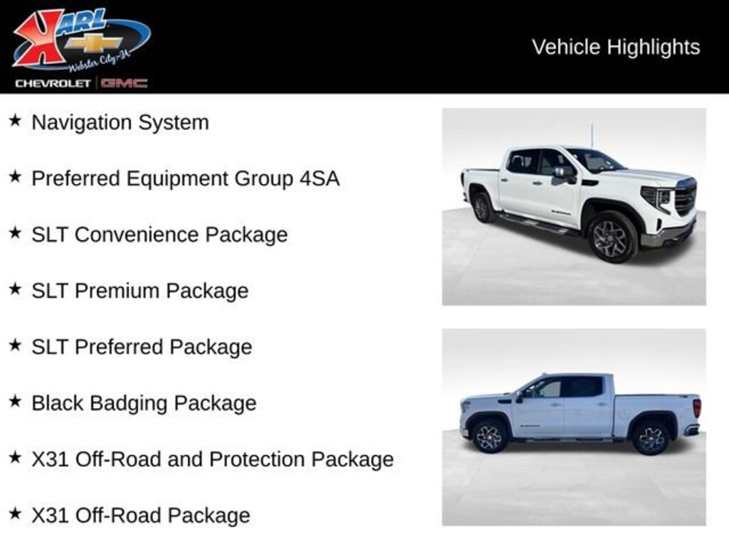 Step inside the Sierra 1500 SLT and experience the epitome of refined comfort. Perforated leather-appointed seats, heated and ventilated front seats, and a premium Bose audio system create an unparalleled driving environment. The intuitive infotainment system with wireless Apple CarPlay and Android Auto integration keeps you connected and entertained on the go.