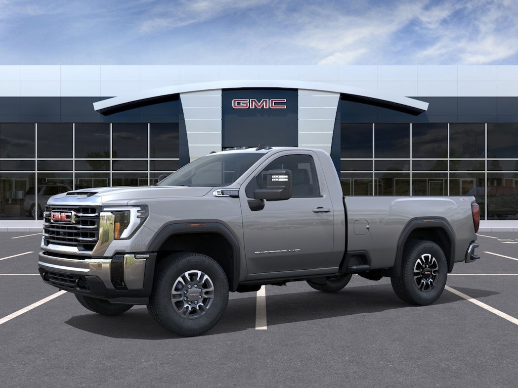 10-Speed Automatic, 4WD, Black Cloth, 10-Way Power Driver Seat Adjuster w/Lumbar, 120-Volt Instrument Panel Power Outlet, 17 Machined Aluminum Wheels, 2 Charge/Data USB Ports, 2-Speaker Audio System Feature, 220-Amp Alternator, 4-Way Manual Passenger Seat Adjuster, A/C w/Dual-Zone Automatic Climate Control, ABS brakes, Adaptive Cruise Control, Air Conditioning, AM/FM radio: SiriusXM with 360L, Auto-Dimming Inside Rear-View Mirror, Automatic Emergency Braking, Brake assist, Buckle to Drive, Chrome Surround Grille w/Chrome Insert Bars, Cloth Seat Trim, Driver vanity mirror, Dual front impact airbags, Electric Rear-Window Defogger, Electronic Stability Control, Emergency communication system: OnStar, Following Distance Indicator, Forward Collision Alert, Front 40/20/40 Split-Bench Seats, Front Center Armrest w/Storage, Front reading lights, Heated door mirrors, Heated Driver & Front Outboard Passenger Seats, Heated Steering Wheel, Heavy-Duty 80 Amp Battery, Hitch Guidance w/Hitch View, Lane Departure Warning System, LED Cargo Area Lighting, LED Fog Lamps, LED Smoked Amber Roof Marker Lamps, Manual Tilt-Wheel/Telescoping Steering Column, OnStar Services Capable, Overhead console, Perimeter Lighting, Pickup Box, Power steering, Power-Adjustable Black Outside Mirrors, Preferred Package, Push Button Start, Remote keyless entry, Remote Start Package, Remote Vehicle Starter System, SiriusXM w/360L Trial Subscription, SLE Convenience Package, SLE Heated Package, Snow Plow Prep/Camper Package, Steering Wheel Audio Controls, Suspension Package, Tachometer, Trip computer, Unauthorized Entry Theft-Deterrent System, Upfitter Switch Kit (5), Wireless Phone Projection. New Price! Sterling Metallic 2026 GMC Sierra 2500HD SLE 6.6L V8 10-Speed Automatic 4WD