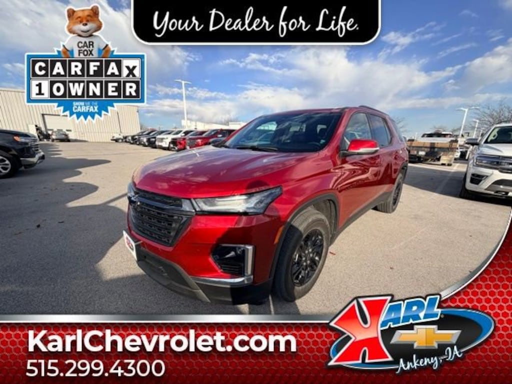 Recent Arrival! Clean CARFAX. Radiant Red 2023 Chevrolet Traverse LT FWD 4DR LT CLOTH W/1LT 3.6L V6 SIDI VVT 18/27 City/Highway MPG 9-Speed Automatic FWDAt Karl Chevrolet we want to help you find the best new or used car in Ankeny that suits your needs. Check out the 2023 Chevrolet Traverse For Sale in Ankeny, IA. When you buy a new car at Karl Chevrolet you know you're finding a vehicle you can rely on. We have a great selection of Platinum Quality Pre-Owned Vehicles. We also pride ourselves in creating a friendly atmosphere and reliable new car dealership that you can trust. Call us with any questions about our 2023 Chevrolet Traverse and our experts will be glad to help you! (515) 299-4300. *Equipment and options are generated by a 3rd party vendor, exact vehicle options may vary. Please see a salesperson for complete details and vehicle information.
