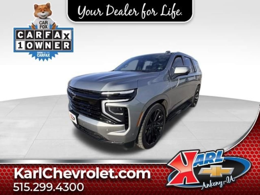 Recent Arrival! CARFAX One-Owner. Clean CARFAX. Sterling Gray Metallic 2025 Chevrolet Tahoe RST 4DR 4WD EcoTec3 6.2L V8 4WD, Jet Black/Victory Red Leather. 15/20 City/Highway MPG 10-Speed Automatic with Overdrive 4WDAt Karl Chevrolet we want to help you find the best new or used car in Ankeny that suits your needs. Check out the 2025 Chevrolet Tahoe For Sale in Ankeny, IA. When you buy a new car at Karl Chevrolet you know you're finding a vehicle you can rely on. We have a great selection of Platinum Quality Pre-Owned Vehicles. We also pride ourselves in creating a friendly atmosphere and reliable new car dealership that you can trust. Call us with any questions about our 2025 Chevrolet Tahoe and our experts will be glad to help you! (515) 299-4300. *Equipment and options are generated by a 3rd party vendor, exact vehicle options may vary. Please see a salesperson for complete details and vehicle information.