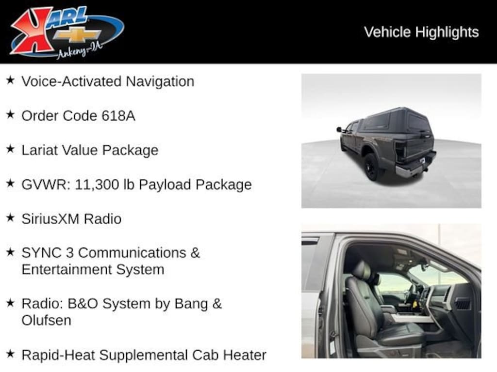 Don't miss your chance to own this exceptional 2021 Ford F-350SD Lariat LARIAT 4WD CREW CAB 6.75' BOX. Visit Karl Chevrolet of Ankeny, the Nation's #1 CarBravo Certified Dealer, and experience the difference for yourself. Our team of experts is ready to help you find the perfect vehicle to meet your needs and exceed your expectations.