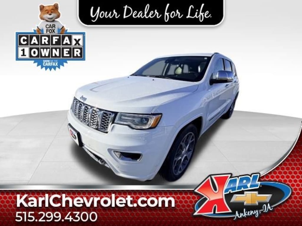 Recent Arrival! CARFAX One Owner & Local Trade! Clean CARFAX. Certified. Bright White Clearcoat 2021 Jeep Grand Cherokee Overland OVERLAND 4X4 3.6L V6 24V VVT 4WD, 1-Year SiriusXM Guardian Trial, 4G LTE Wi-Fi Hot Spot, 7 & 4 Pin Wiring Harness, 8.4 Touchscreen Display, Adaptive Cruise Control w/Stop, Advanced Brake Assist, Apple CarPlay, Apple CarPlay/Android Auto, Auto High-beam Headlights, Brown Light Frost Interior Color, Class IV Receiver Hitch, Front dual zone A/C, Full Speed FWD Collision Warn Plus, Google Android Auto, GPS Antenna Input, GPS Navigation, HD Radio, Heated front seats, Heated rear seats, Heated steering wheel, Integrated Voice Command w/Bluetooth, Lane Departure Warning Plus, Memory seat, MOPAR Cargo Area Liner, MOPAR Cargo Area Liner (DISC), MOPAR Interior Protection Group, MOPAR Slush Mats, MOPAR Slush Mats (DISC), Navigation System, Parallel & Perp Park Assist w/Stop, ParkView Rear Back-Up Camera, Power driver seat, Power moonroof, Protech II, Quick Order Package 2BP, Radio: Uconnect 4C Nav w/8.4 Display, Rain Sensitive Windshield Wipers, SiriusXM Satellite Radio, SiriusXM Traffic Plus, SiriusXM Travel Link, Ventilated front seats, Wheels: 20 x 8.0 Polished/Tech Gray Aluminum. 18/25 City/Highway MPG 8-Speed Automatic 4WDAt Karl Chevrolet we want to help you find the best new or used car in Ankeny that suits your needs. Check out the 2021 Jeep Grand Cherokee For Sale in Ankeny, IA. When you buy a new car at Karl Chevrolet you know you're finding a vehicle you can rely on. We have a great selection of Platinum Quality Pre-Owned Vehicles. We also pride ourselves in creating a friendly atmosphere and reliable new car dealership that you can trust. Call us with any questions about our 2021 Jeep Grand Cherokee and our experts will be glad to help you! (515) 299-4300. *Equipment and options are generated by a 3rd party vendor, exact vehicle options may vary. Please see a salesperson for complete details and vehicle information.Certification Program Details: Karl Chevrolet of Ankeny, The Nation's #1 CarBravo certified dealer, where platinum quality vehicles and unmatched benefits come together! This vehicle qualifies for our CarBravo Certified program reserved for the highest-quality pre-owned vehicles that are 10 model years or newer and have less than 100,000 miles. Every CarBravo Certified vehicle includes: ? Comprehensive 126-Point Inspection Professionally inspected by factory-trained technicians to meet strict mechanical, safety, and cosmetic standards. ? 6-Month / 6,000-Mile Bumper-to-Bumper Limited Warranty Enjoy added peace of mind with extensive coverage from the day you drive off the lot. ? 24/7 Roadside Assistance & Courtesy Transportation Flat tire? Dead battery? Need a tow? You're covered anywhere, anytime throughout the warranty period. ? Vehicle History & Title Guarantee Clean title, completed safety recalls, and a full CARFAX® or AutoCheck® report provided for complete transparency. ? 10-Day / 500-Mile Exchange Promise If you don't absolutely love it, bring it back and exchange it no hassle, no stress. Experience peace of mind and premium protection exclusively from Karl Chevrolet of Ankeny, the Nation's #1 CarBravo Certified Deale